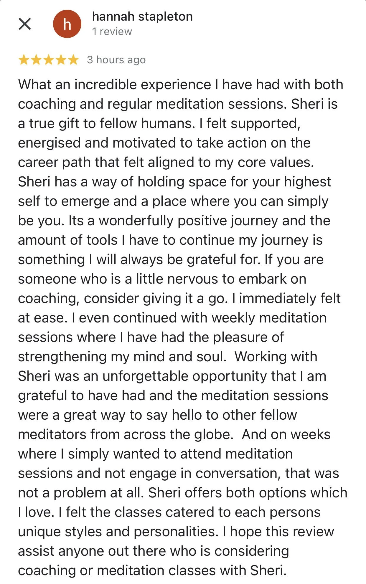 ”I’m incredibly grateful for Sheri’s insight and direction. Her style of communicating is easy and comforting and the results are impactful.”